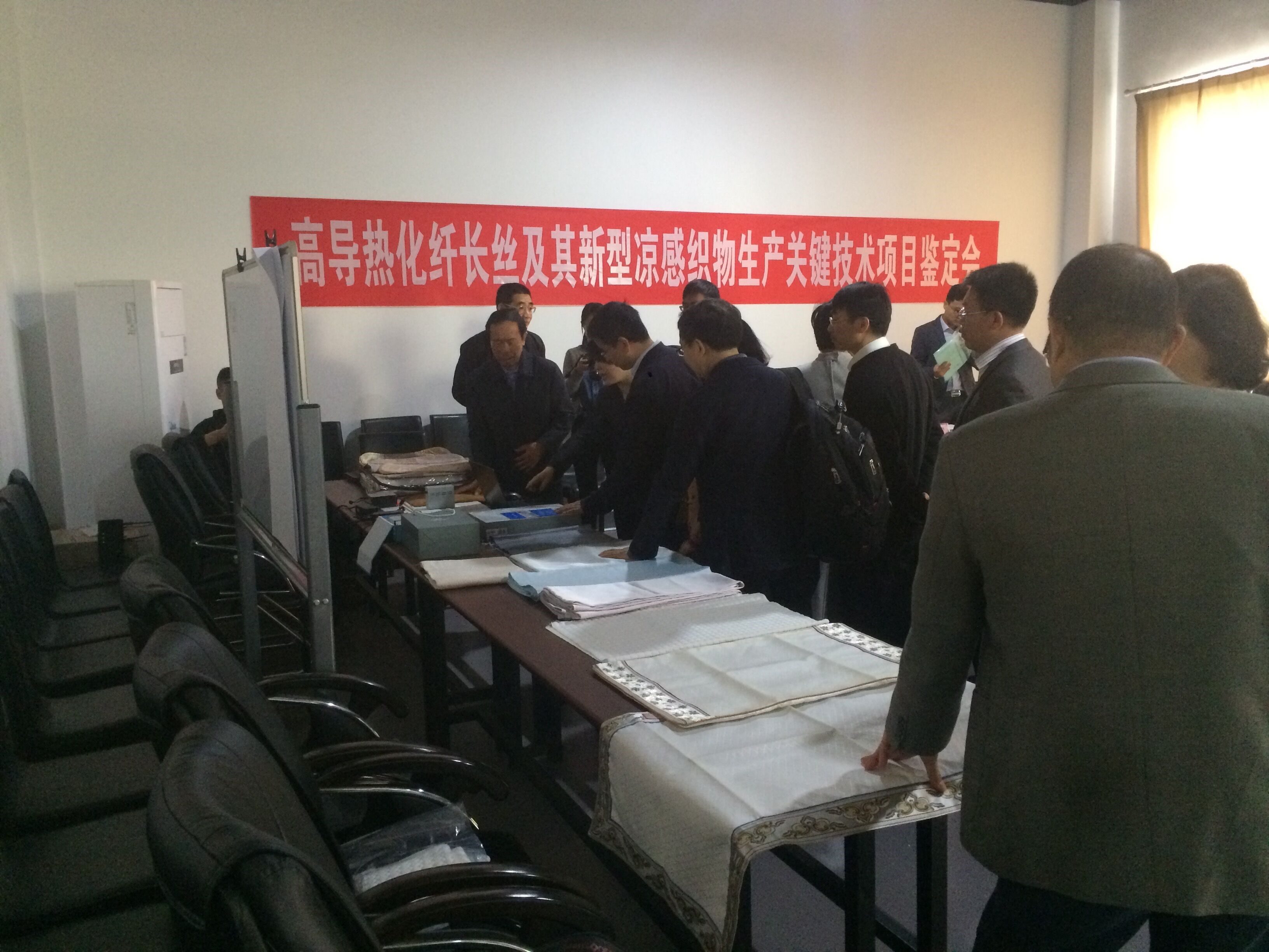 2017年427日,中國紡織工業(yè)聯(lián)合會組織召開了高導(dǎo)熱化纖長絲及其新型涼感織物生產(chǎn)關(guān)鍵技術(shù)項目鑒定會(見圖1、圖2)。其中,由我公司和總后軍需研究所合作研制的用于測試涼感織物涼爽性能的快速響應(yīng)式FFZ415熱流式織物涼感測試儀,受到了鑒定委員會的認可,項目順利通過鑒定。